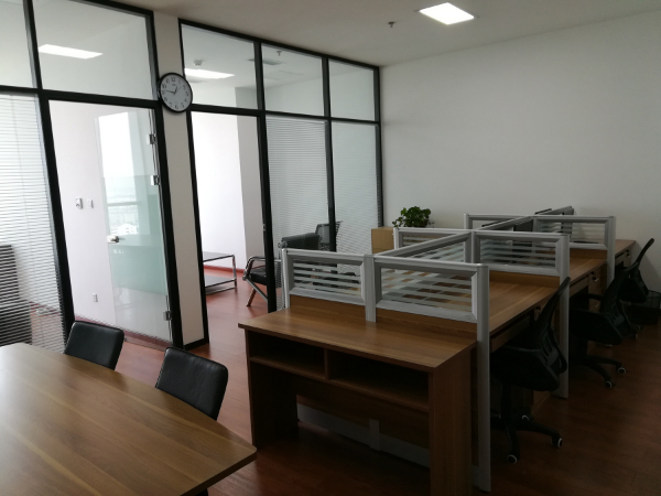 淄博张店高新区写字楼办公室出租, 位置位于柳泉路居然之家创业火炬广场D座。朝东面柳泉路,116平方精装修,隔三间外带一洗手间(仓库),带办公家具随时拎包入驻。